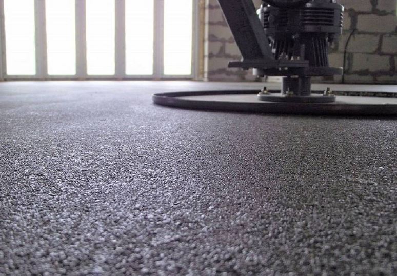Затирка: После укладки и уплотнения поверхность затирают затирочной машиной. Это обеспечивает гладкость и ровность пола.