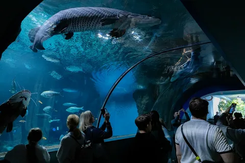 - Зона «Реки и озера»: В этой зоне представлены обитатели пресноводных водоемов России и других стран. Вы сможете увидеть огромных сомов, пираний, арапайм и других интересных рыб.