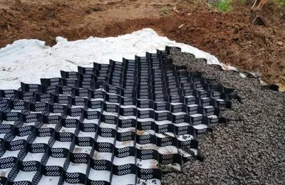 - Полиэтиленовые георешётки — лёгкие, хорошо подходят для лёгких дорог и сельских участков, устойчивы к воде и химии.